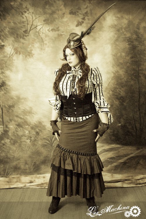 Cette charmante demoiselle a la chance de travailler avec des artistes issues de la communauté Steampunk à travers les USA.